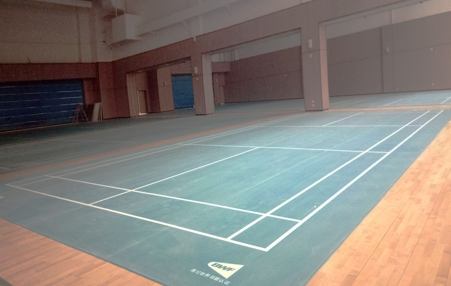 • 東莞市技師學院木地板涂刷彩漆及logo繪制-斯博科體育